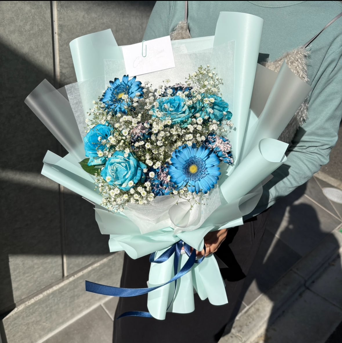 ※紫・水色・青のお花はお花専用のスプレーで染めさせて頂きます。
