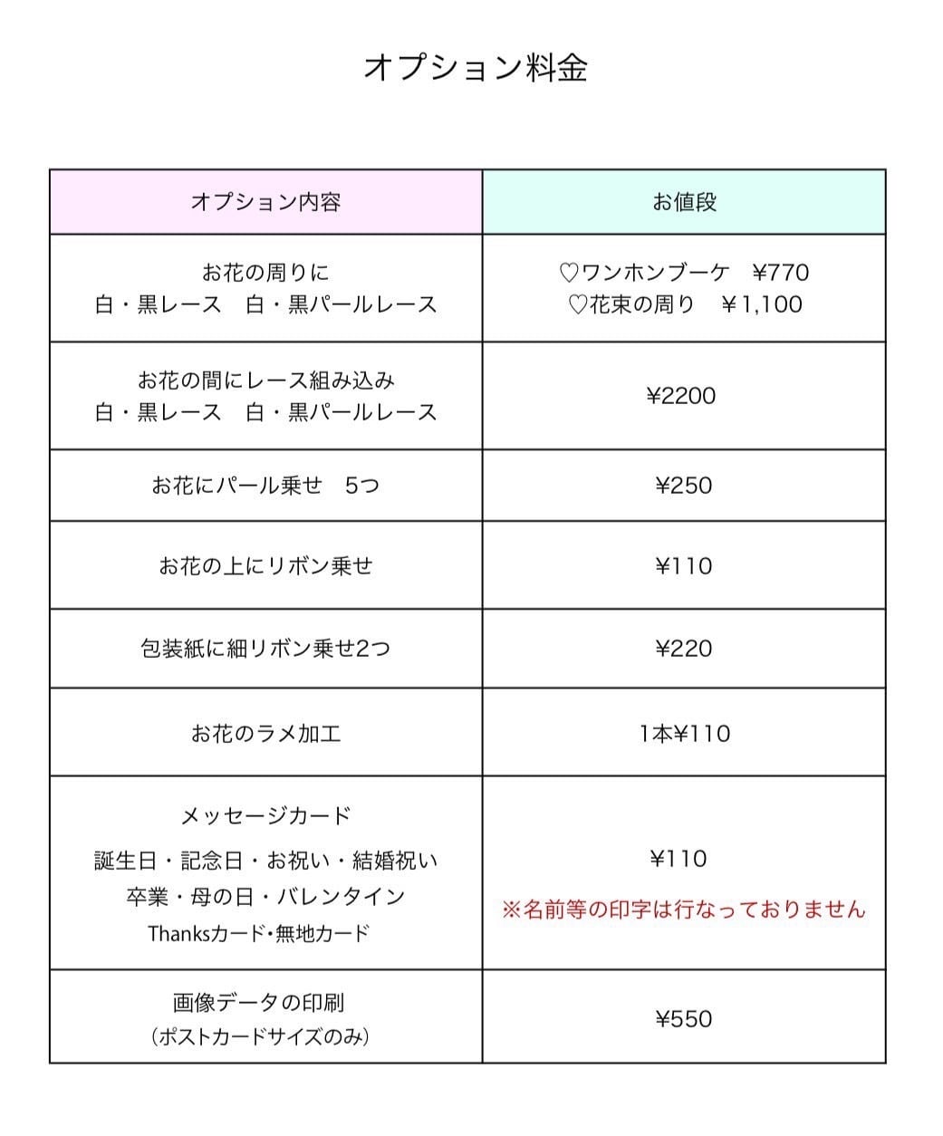 ■花材の指定は必須ではないので、ご指定がある場合のみお申し付けください。